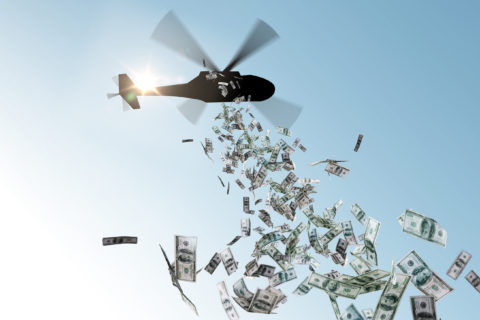 Immaginate per un attimo che milioni di banconote piovessero giù dal cielo, precisamente da un elicottero in volo. Questo evento in economia prende appunto il nome di “Helicopter money”.